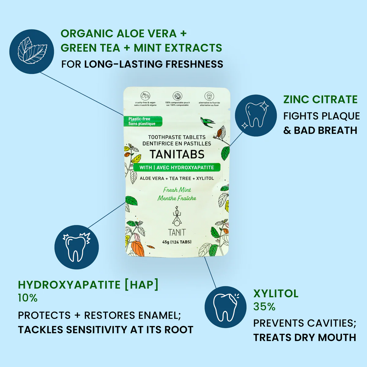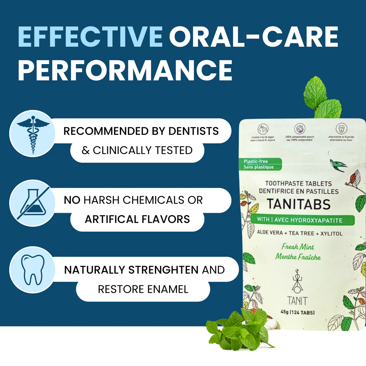 Switching from single-use toothpaste tubes has never been easier—or smarter. TANITABS deliver everything you expect from a high-performance toothpaste, minus the mess and waste.